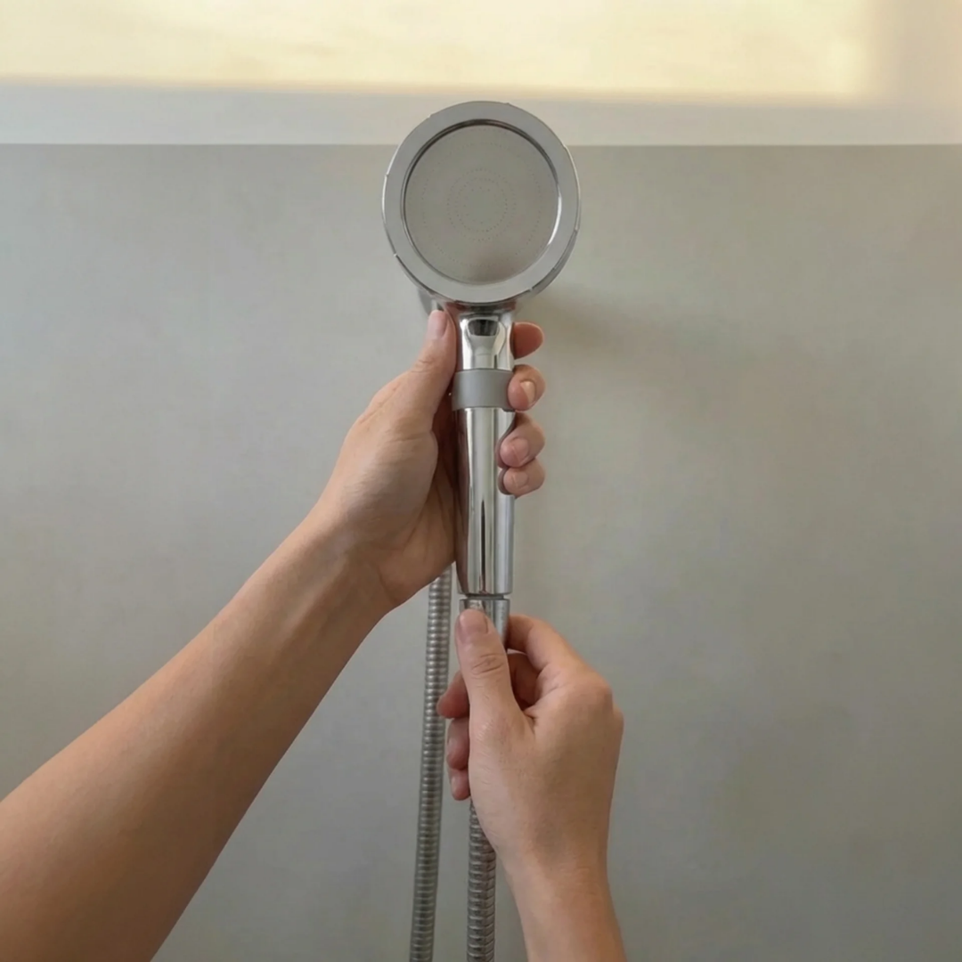 2. Ręcznie przykręć słuchawkę iskin do węża prysznicowego (standardowe przyłącze G1/2", pasujące do wszystkich popularnych węży prysznicowych).